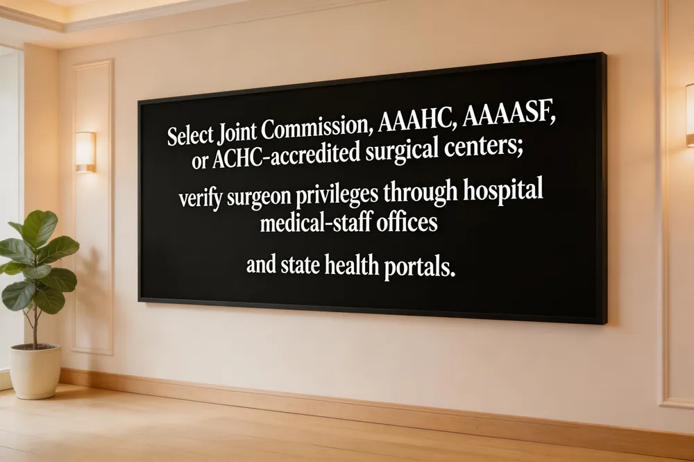 Selecting an accredited surgical center is the cornerstone of a safe, luxury aesthetic experience. Facilities that hold Joint Commission, AAAHC, AAAASF, or ACHC accreditation must meet rigorous standards for sanitation, equipment, emergency preparedness, and staffed with a qualified anesthesiologist or certified registered nurse anesthetist. These verifications guarantee a clean, fully equipped operating room and a team trained to handle complications, providing peace of mind for discerning patients.