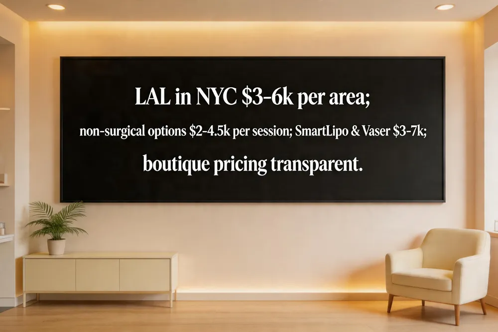 In New York City, laser‑assisted liposuction (LAL) typically costs $3,000‑$6,000 per treatment area, with exact pricing driven by fat volume, laser wavelength (e.g., 1064 nm Smart 1470 nm) and surgeon expertise. Madison Plastic Surgery offers a complimentary, personalized consultation that yields a detailed, itemized estimate, accounting for anesthesia, facility fees and any adjunctive skin‑tightening services. Multi‑area bundles often provide savings, but insurance does not cover cosmetic LAL.