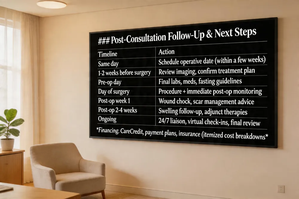 All this information culminates in a personalized treatment plan, drafted on the spot. The plan outlines recommended surgical or non‑surgical options, anesthesia considerations, recovery timelines, safety protocols, and a transparent cost breakdown, including financing possibilities. A detailed post‑operative care schedule and follow‑up appointments are also scheduled, ensuring a seamless journey from consultation to confident, natural‑looking results.