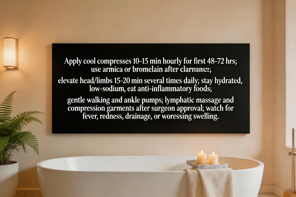 Managing post‑surgery swelling starts with intermittent cold compresses for the first 48‑72 hours, then gentle head elevation to aid fluid drainage. Follow your surgeon’s regimen of prescribed anti‑inflammatory medication, compression garments or support bandages, and low‑impact lymphatic massage once cleared. Hydration , a low‑sodium diet, and avoiding smoking further curb edema while tight clothing is removed.
