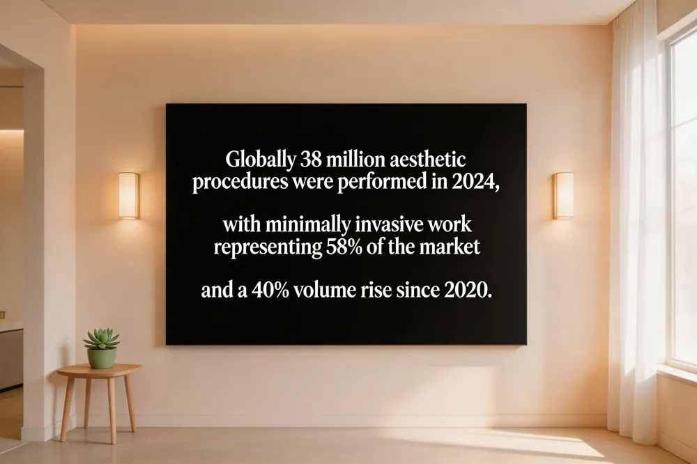 Plastic surgery statistics worldwide 2024 Globally, approximately 38 million aesthetic procedures were performed in 2024—17.4 million surgical and 20.5 million non‑surgical procedures. The United States led with over 6.1 million procedures, followed by Brazil and Japan; Asia, especially South Korea and China, recorded the fastest growth at ~9 % YoY. Eyelid surgery overtook liposuction as the most common surgical procedure (2.1 million cases) remained the most common surgical procedure. Botulinum‑toxin injections remained the top non‑surgical treatment (7.8 million). Minimally invasive interventions now represent about 58 % of all aesthetic work reflecting a shift toward anti‑ageing and injectable solutions, with overall global volume up ~40 % since 2020.