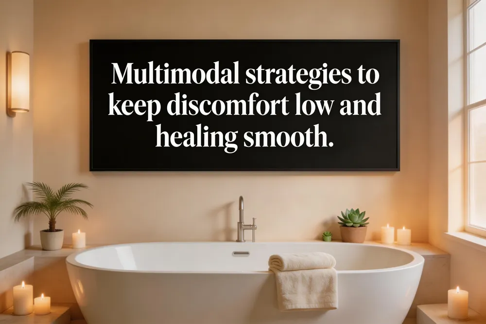 Recovery from a Mommy Makeover is most uncomfortable during the first 48 hours, when swelling, tight abdominal binders, and the incisional sites of a tummy tuck or breast work are rated 5‑7 out of 10. By the end of week 1 the pain eases to a 4‑5 rating, and by week 2 most patients experience only mild soreness that can be managed with over‑the‑counter ibuprofen or acetaminophen. Heavy‑lifting restrictions (≤5 lb) and gentle short walks promote circulation and reduce tension on the incisions, further easing discomfort. Prescription analgesics—often a short course of opioids or a long‑acting local anesthetic such as EXPAREL®—are used for the first few days, then tapered as swelling subsides. Non‑pharmacologic strategies include wearing the surgeon‑specified compression garment continuously for the first 3‑4 weeks, applying cold packs intermittently, and maintaining a protein‑rich, hydrated diet to support tissue repair. Scar‑care begins at the 2‑month mark with silicone sheets or massage, which flatten the scar and diminish tension, helping the final contour look natural while protecting the healing tissue. This multimodal approach ensures that the early postoperative pain is manageable, allowing patients to enjoy the confidence‑boosting results of their customized makeover.