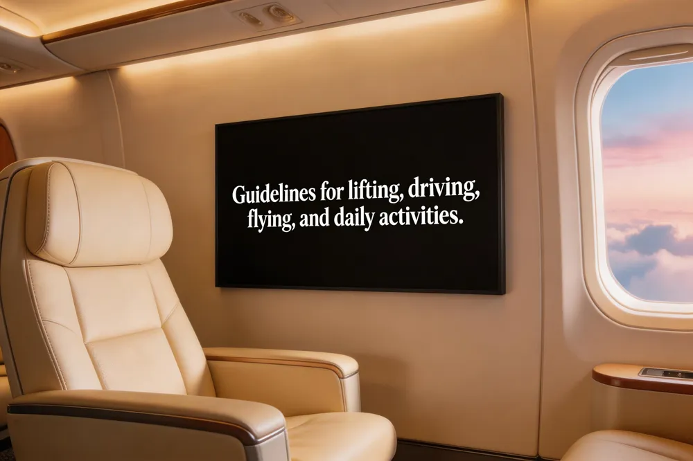 During the first week after a mommy makeover keep all lifting under 5 lb and protect the abdominal core with a soft bend at the waist; this restriction typically eases to a 10‑lb limit by week 6 while still avoiding heavy children or bulk items. Driving can resume once narcotic pain medication is stopped and a seat‑belt fits comfortably—usually around weeks 3‑4—provided the patient feels stable and incisions are healed. Flying is safe after 4‑6 weeks of uncomplicated healing; for long‑haul trips many surgeons advise waiting three weeks, staying hydrated, wearing compression garments, and keeping pain meds handy. Sexual activity is generally permissible after 4‑6 weeks, depending on whether a labiaplasty was performed. Light walking begins immediately, progressing to gentle cardio by weeks 3‑4; moderate exercise and resistance work may be introduced after week 6 once the surgeon clears the patient.