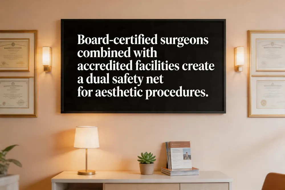 What accreditation should a plastic surgeon have? The surgeon must be board‑certified and perform procedures only in facilities accredited by agencies such as the Joint Commission, AAAASF, or AAAHC. Facility accreditation guarantees compliance with strict safety, sanitation, and emergency‑preparedness protocols, creating a synergistic safety net that protects patients and supports superior aesthetic outcomes.